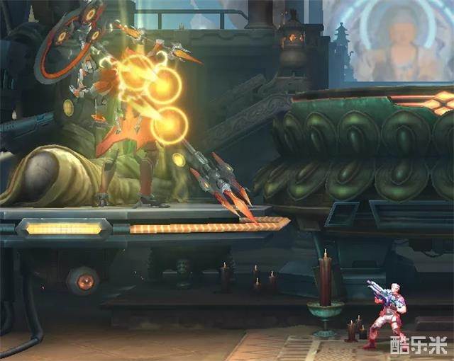 六技能:boss点名一个玩家,随后发射几波跟踪子弹。这个时候就需要重装套上盾,主动去阻挡子弹了,防止队友被击中。