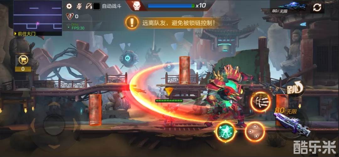 八技能:BOSS瞄准一名队友,随后从手部发射出一枚锁链子弹,被击中的队友身上会出现捆缚的效果,其余队友要远离该名队友,否则彼此之间会出现锁链效应,如果锁链持续存在了6秒,那么双方都会被眩晕以及受到伤害。