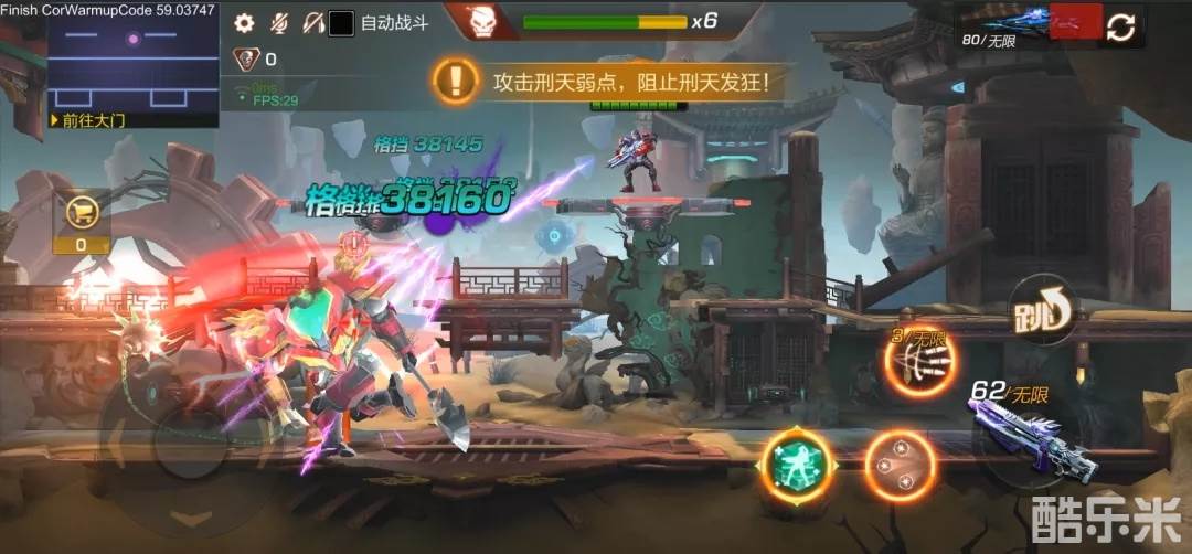 BOSS特点:拥有诸多近战大范围的攻击手段,我们需要时刻和刑天保持距离。