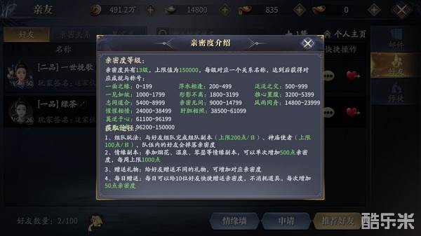 3.其中【蓝颜】和【红颜】只能与异性玩家达成关系,且该关系与【知己】和【至交】关系不互通。