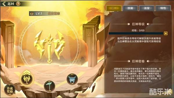 3、通过参与太荒秘境-简单难度,通关时携带的巨神意志将获得一定数量的经验值。巨神将根据等级激活对应的技能效果,强化巨神在战斗中的效果。