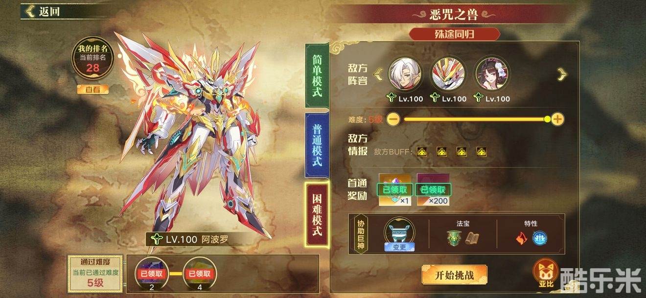 《奥拉星手游》难度5恶咒之兽打法攻略