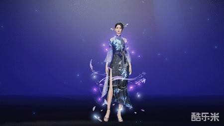 女车手一身海蓝色连身裙,裙摆伴随荧蓝光效飘动,似乎将海洋的游鱼汇聚,灵动可人。连身裙上植物枝条的荧光印花自肩颈垂到腿前,外一层浅色披纱与周身仙气缥缈相衬,腰间蝴蝶结的缎料腰封为整体增添一丝活泼。