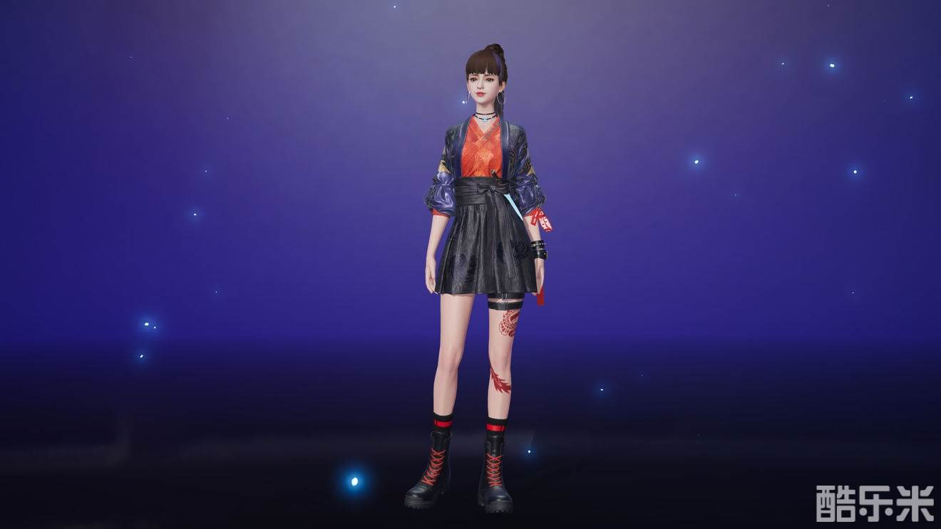 全新时装“黑金岁月”以干练清爽的武者形象登场。橙红与黑的主题色在素净中燃起强大力量,习武者的装束多处绑带,尽显利落。
