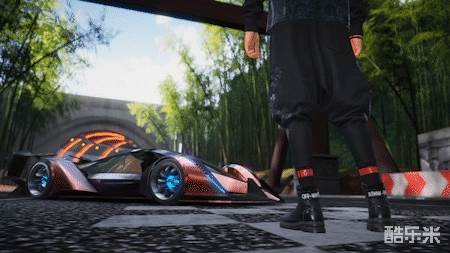 女车手腰间别着一把尖利的匕首,靠近可要当心~左腿上有红色龙纹盘踞,飒爽同时威风逼人。