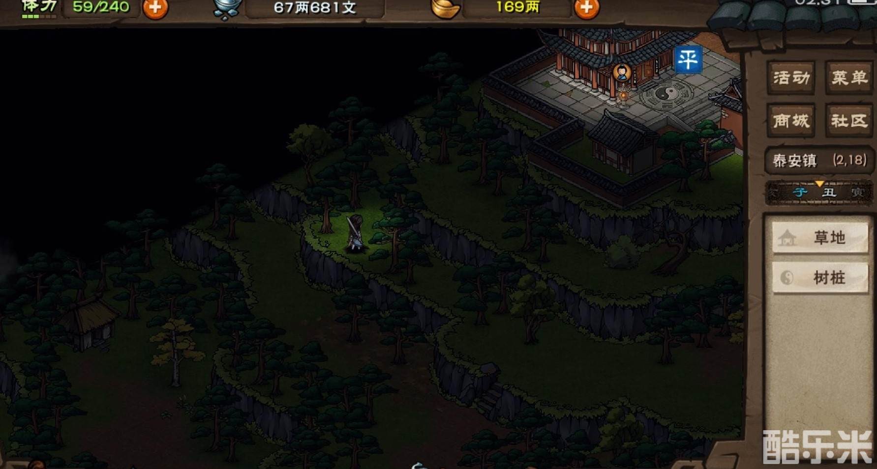 我们来到泰安镇这个地图,到了下图这个位置,坐标是(2.18),来这里后有一个道观。