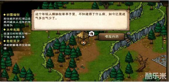 ③救人,林德(4.32)——愁眉苦脸——答应——查看林症状——郎中(24.28)——求医救人,告知症状——去西边打蛇(一般蛇王才会掉蛇胆)——给郎中蛇胆——等待——回(4.32)喂药。