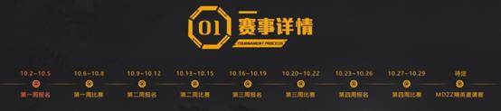 10月2日-5日开启第一周线上赛报名,10月6日-8日进行第一周的线上赛比赛;10月9日-12日开启第二周线上赛报名,10月13日-15日进行第二周比赛;10月16日-19日开启第三周比赛报名,10月20日-22日进行第三周的比赛;10月23日-26日进行第四周线上赛报名,10月27日-29日进行第四周的比赛。