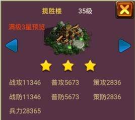 满级属性:11346战攻(战防),5673普攻(普防),2836策攻(策防),28365兵力