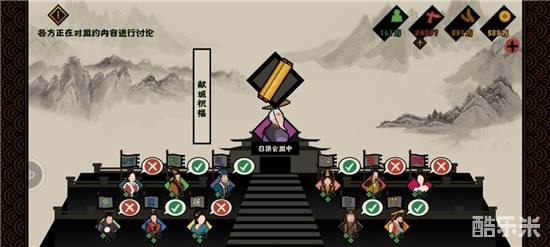 核心是刑天以及提升威望的名臣,这里我带了韩非子,郦食其也行不过不是很想要减战力的debuff,有落玉盘会比较快,其他臣子随便。