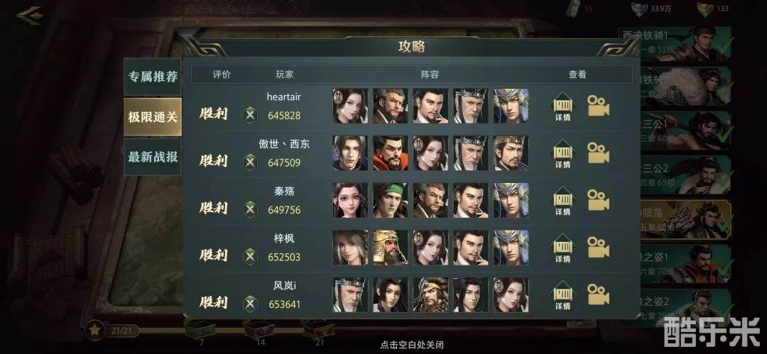 除此以外也可以堆高自身的战法防御能力,黄月英+赵云的组合能够充分利用吕布1v9的特性苟活过关。