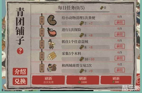 第一次免费刷新,第二次消耗1000铜钱,第三次消耗500蔬菜