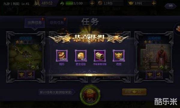 世界任务中,每满一定的次数可以领取相应的奖励,当完成 23 次时,将奖励一个 高级装备箱,而高级装备箱是有一定概率开出金色装备的,所以,一定不要错过。