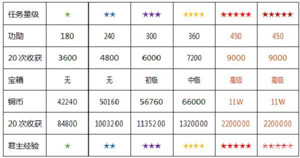 刷新消耗——每天均有几次免费刷新,然后每次刷新均需消耗 10 元宝,元宝消耗不会随刷新次数增加而增加,也算是一个人性化的设计,但是.........平均 100 元宝左右才会刷新到橙色及以上任务,所以,要慎重。