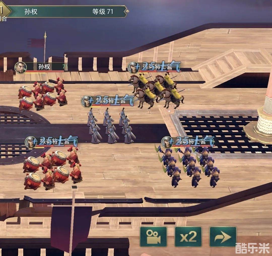 副本解析:卡点图往往以npc的鼓手数量来决定,两个前排鼓已经证明了孙权这个卡点的难度。鸩酒,海啸这两个技能输出非常高。我们采用雁行阵(增加队伍策略防御能力)来应对,强行顶住连环的技能伤害。利用赵云、关羽等直线输出能力优秀的武将尽早斩杀对面的海啸,顶住npc的战法与计策伤害即可过关。