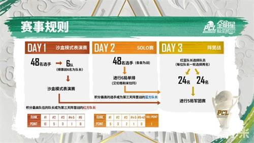 【Krafton Inc.旗下PUBG工作室】奋勇争先,龙吟四海!2022年绝地求生冠军联赛(PUBG CHAMPIONS LEAGUE,简称“PCL”)春季赛全明星赛落下帷幕,本周,为期三天的全明星赛可谓是让观众大呼过瘾!让我们先来了解下本次全明星赛的规则章程: