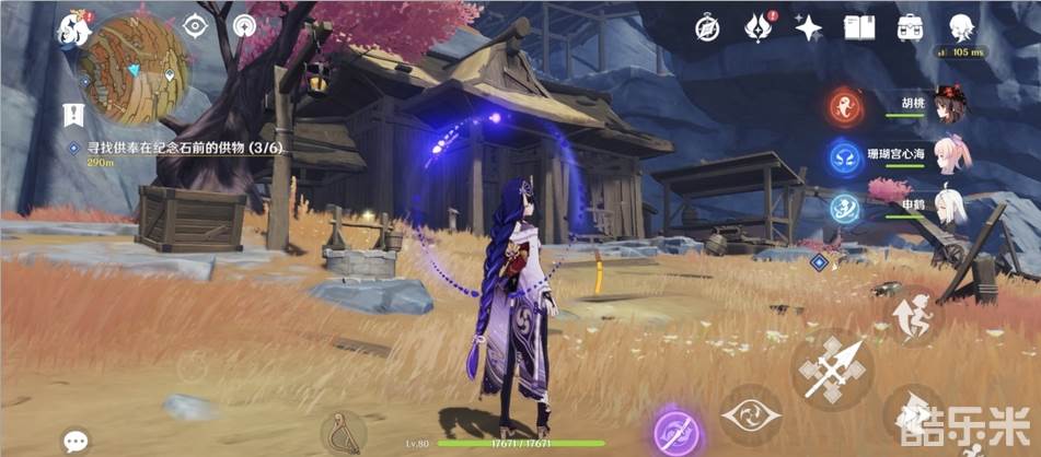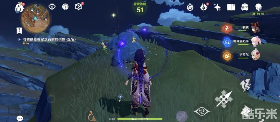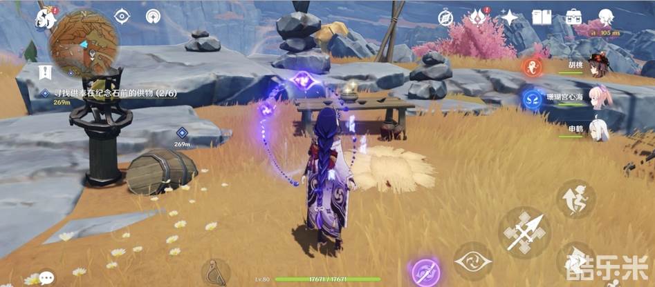 来到图片这个地方有个npc他旁边会有三朵清心采了即可触发剧情获得远眺之花