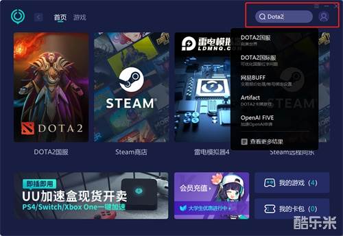 第二步:选择《Dota2国服》或《Dota2国际服-国服》进行加速,最近Dota2国际服在UU上可以免费加速哦~