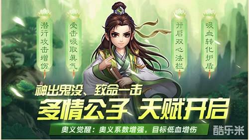 “多情公子因乘兴,写出江春日暖时。”在《侠客风云传ol》中,常常神出鬼没、给敌人致命一击的多情公子深受玩家喜爱,是持久拉锯战的种子选手之一。多情公子自身所携带的绝学护盾使其生存能力得到提高,奥义自带的吸血效果提高了自身恢复。此外,除了乌衣宝典之外,天煞自带的潜行效果和觉醒的潜行效果均可以触发天赋六阶段效果。