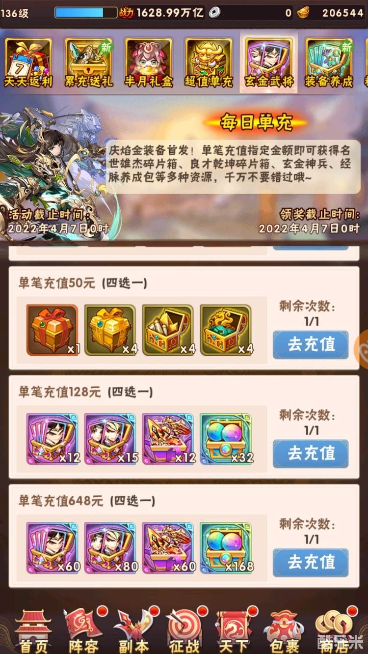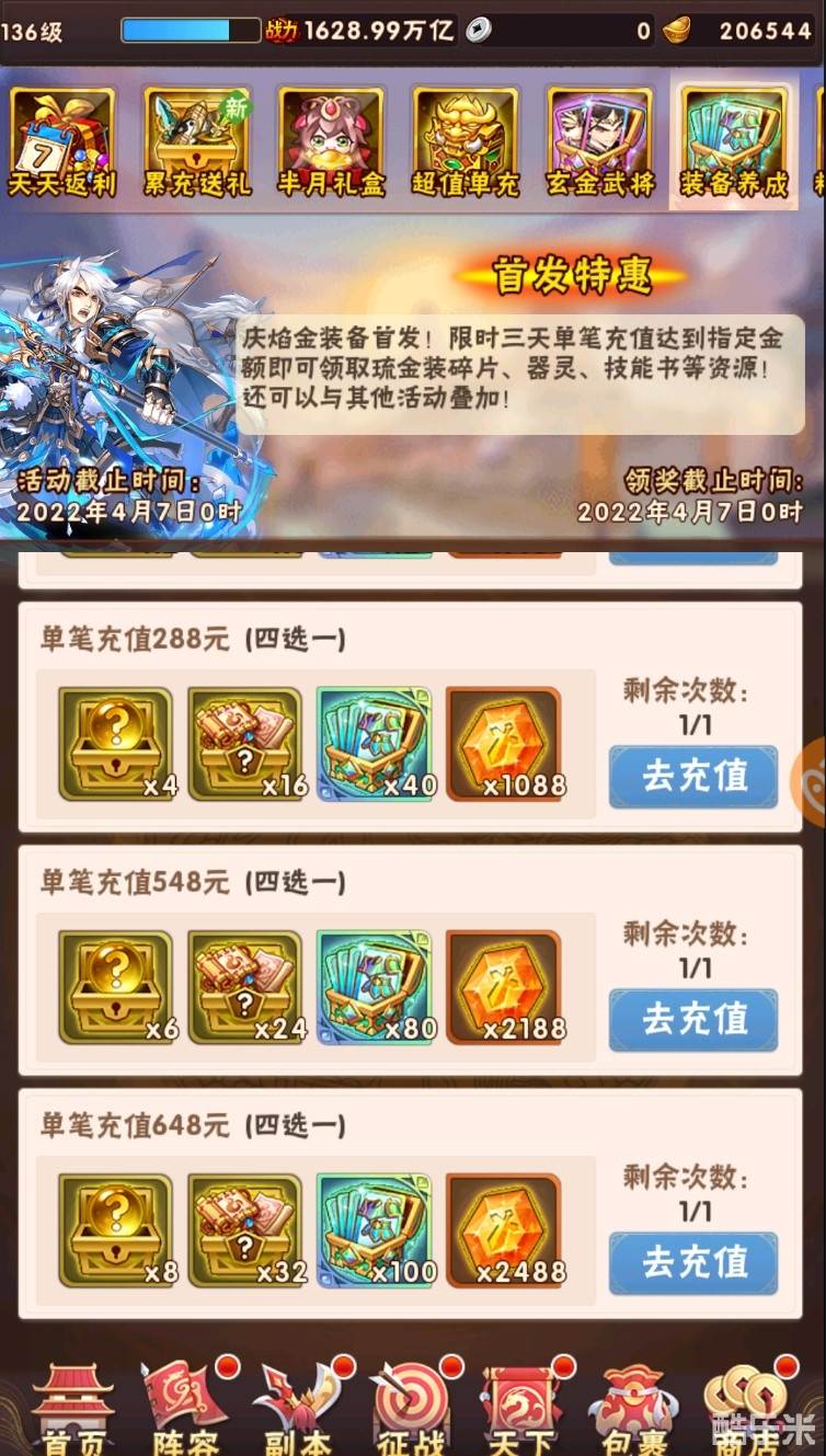 踏春欢庆第一轮来了!全新焰金装备破空入世,玄金武将协力助阵!焰金装备刻印材料上架,优惠尽在超值单充!每日单充惊喜来袭,玄金武将重磅回归!首发特惠开启,琉金装碎片、器灵、技能书限时贩售!福利回馈,签到获取琉金战宠!