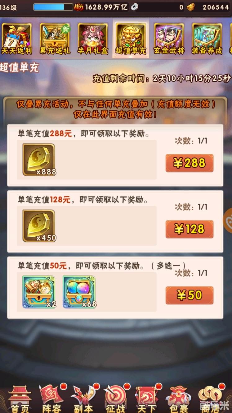 4.超值单充的充值不与任何形式的单充活动叠加,如:欢庆佳节中单笔充值活动、天天返利、月基金、周基金、月卡、豪华签到等;