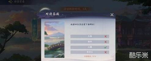 5、对诗答题里面的最后五题,最后一题的话我们点击这个第三个选项就可以了。