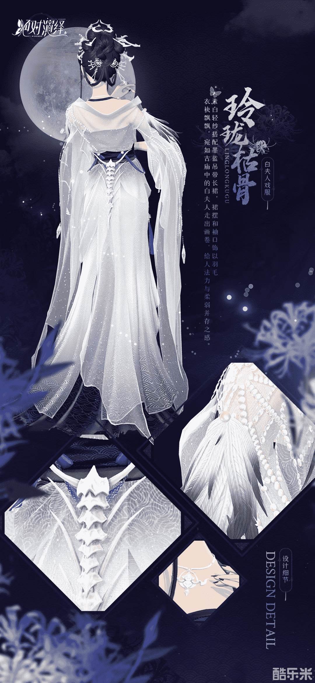 官方也是听到了玩家的呼声,便在最近上线了白夫人的同款戏服【玲珑枯骨】!在《烂片的诞生》中,美艳的反派白夫人,原型是一把白骨,以白夫人戏服为灵感设计的裙装与其原型同名,衣袂飘飘,窈窕似云浮。