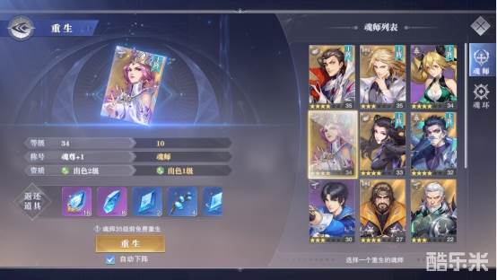 重生可重置魂师等级、称号、资质,并100%返还培养材料,所返还的培养材料将可以自由为其他魂师进行使用。