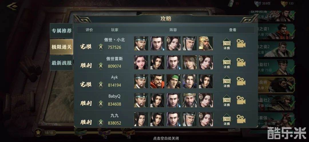 1.每次可上阵三个部队,双方三个部队依次对阵,三次对阵结果三局两胜判断挑战胜败。