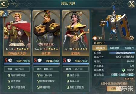 阵容解析:本阵容的主要输出靠汉尼拔的被动/指挥输出,所以输出是非常稳定的,核心思路是给汉尼拔制造输出环境,所以选用超级肉盾亚历山大大帝扛伤害,加上武则天削减敌方属性进一步降低对方输出,散兵战术则负责进一步提升汉尼拔输出。