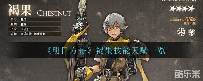 明日方舟褐果技能天赋怎么样?明日方舟最近上线了全新医疗干员褐果,很多小伙伴都很想知道褐果的技能天赋是什么,今天小编给大家带来了《明日方舟》褐果技能天赋一览。感兴趣的小伙伴一起来看看吧。