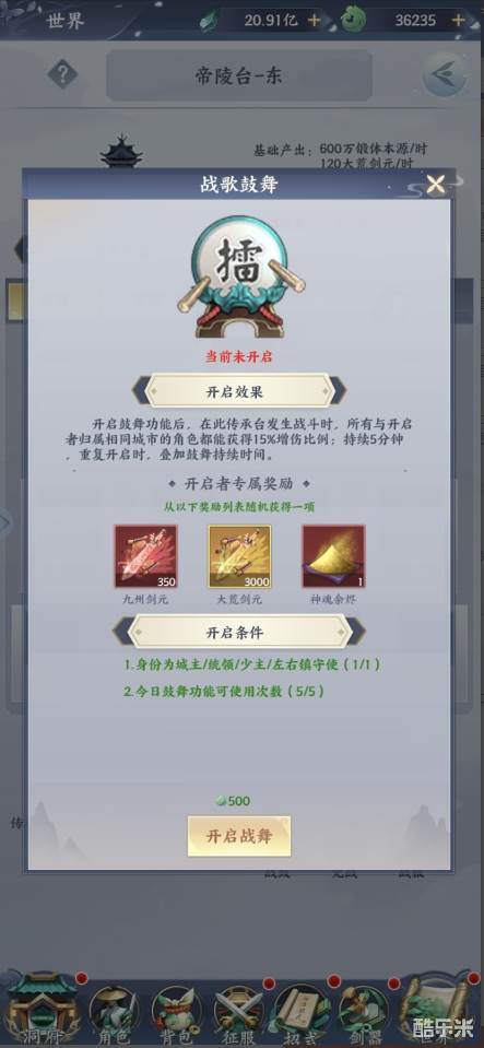 城主可通过开启鼓舞状态,令所有同城的剑主在终焉之地战斗时获得加成:在同一个传承台内,友军数量越多,战斗时也会得到他们的协助。