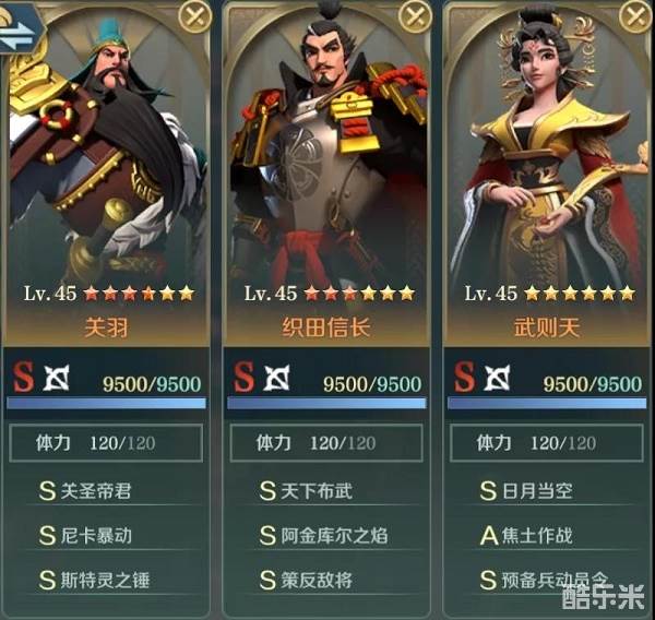 织田信长负责先手施加灼烧状态,武则天负责减伤、回复,提高队伍的续航,使队伍保持一个健康的兵力,关羽则是提供高爆发输出。