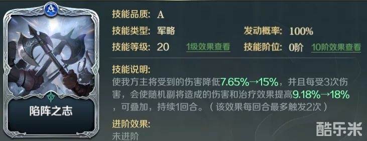 散兵战术的下位选择,降低主将受到的伤害,并增加副将的伤害和治疗效果。