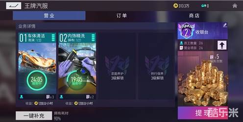 玩家后期可以消耗金币和信用凭证来升级服务中心,升级有四大作用:增加员工数量、解锁新订单、提高顾客信用星级与解锁新的业务。