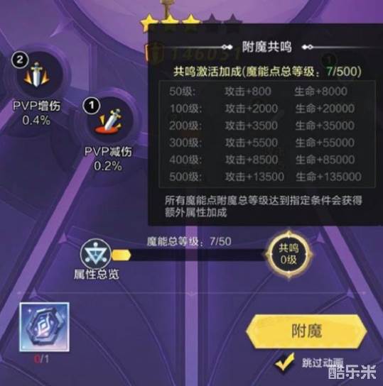 ● 魔典三星后开启附魔,附魔会增加PVP增减伤这些稀有属性,对战斗的影响是比较大的,不过消耗比较大,大家可以看情况投入。
