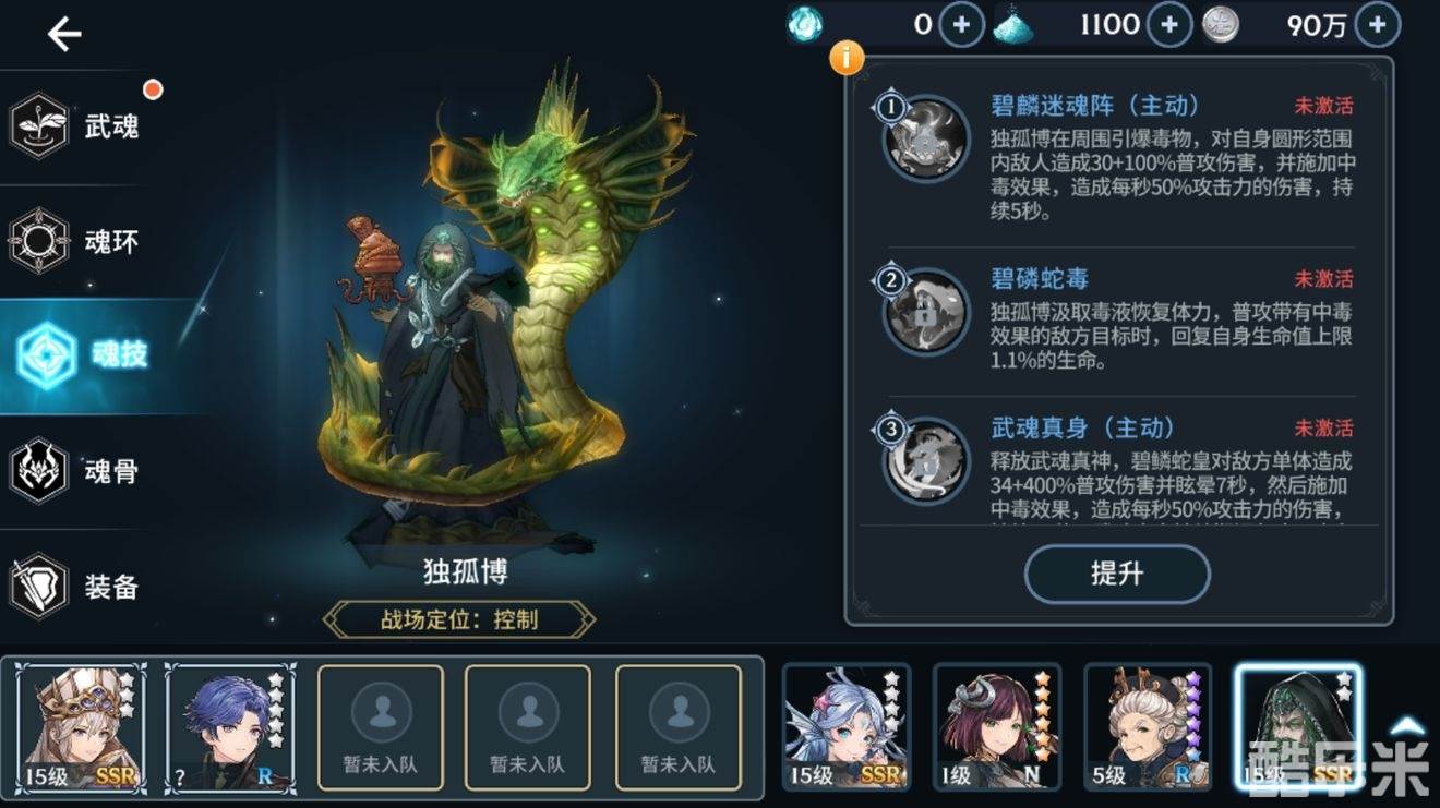 如果说月关的技能勉强算的上是控制型魂师,那么独孤博则更像是一个攻击型魂师。大部分技能提供的是伤害和中毒效果。