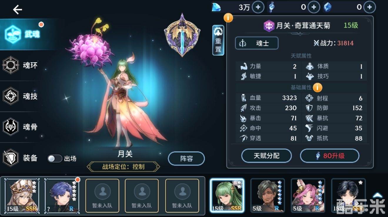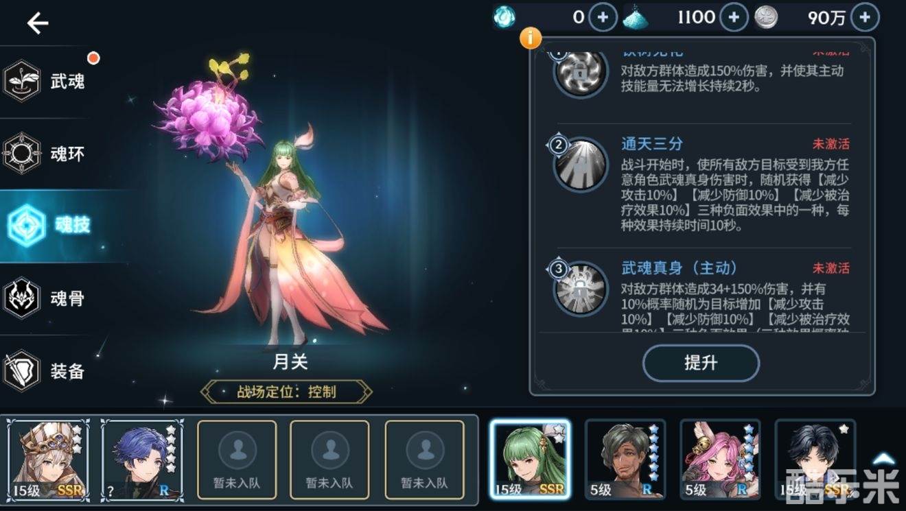 首先月关是一名BUFF类控制魂师,不会给敌人提供眩晕等强控效果。但是会为敌方提供各种DEBUFF。