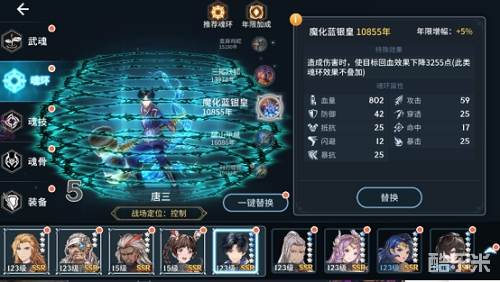 11、这套魂环,主要是为友方增加BUF,以及提升自身的伤害,对敌方造成负面状态,搭配这套魂环,输出所带的魂环可以全部上输出,让输出打出高伤害,输出主要的缺点就是太脆,没有自保能力,这里带这套魂环主要就是保护我方脆皮被敌方秒,同时也提升了自身的输出效果,也大大降低了敌方的输出能力。