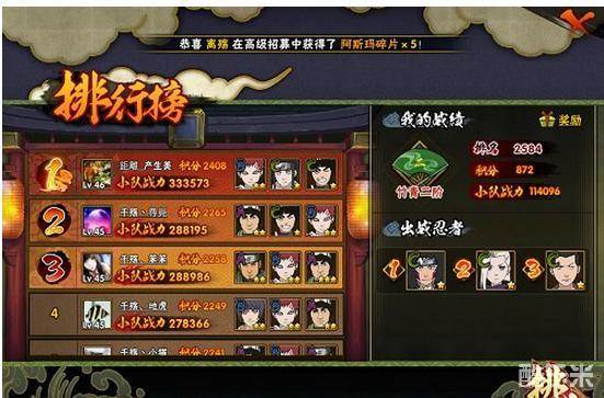 排行榜设置各色忍者线下挑战,这里不仅仅是战力榜的体现,更是每位玩家辛勤提升战力的最好见证。