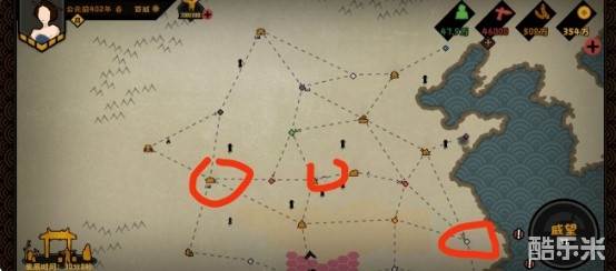 图上的红圈是商鞅(392)老子(391)的刷新地;