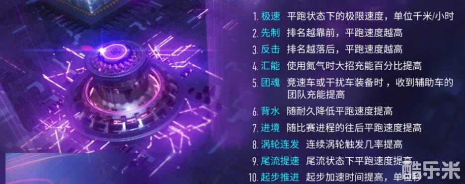 该车出场技能开局5000氮气量,推荐使用急先锋芯片与2x3氮气,开局可以领先他人一步