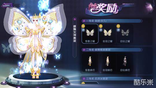 为了庆祝国庆中秋双节来临,除了中秋彩蛋之外,还有全新的蝶舞彩蛋和蝶皇蝶后蛋装。蛋装一如既往的采用华贵炫目的风格。而这次的蝶皇蝶后套装,最具有特色的当然就是身后华丽的蝶翼,不仅镶嵌银钻与宝石,还有蝴蝶幻影的光效,让你置身于蝶群中,享受招蜂引蝶的快乐~