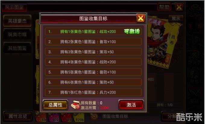 ·达成对应星级与品质的图鉴收集目标条件,即可激活目标获得属性提升。