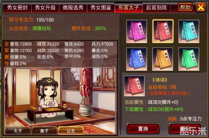 ·公主研习等级上限及属性状态同样受到太子科技等级影响。