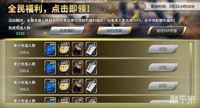 活动期间,全服充值人数与越多,所有玩家可领取的福利越多。