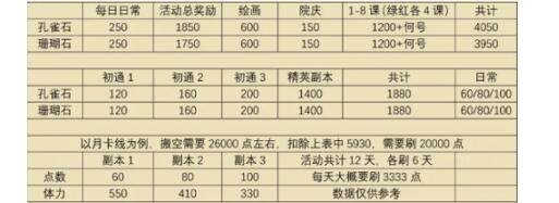 体力、花诏令、升阶材料、红四艺、金纹玉樱、黄四艺、头像及头像框、何号。