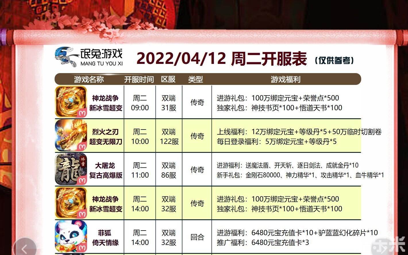 氓兔游戏官网-白狐游戏官网-4月12号开服表