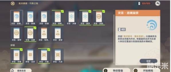 这里是所选择的灵签和妙签,布摄比较重要,可以抑制怪物回血,然后以冰元素为主,水元素为辅,造成冰冻效果。