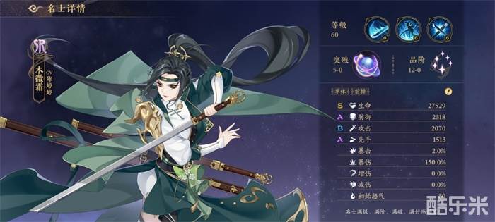 技能描述:木微霜在战斗中忠心护主,对敌方单体造成攻击力300%的伤害,并增加自身10%的防御力,持续2回合。并驱散1名角色至多2个减益状态或控制效果。